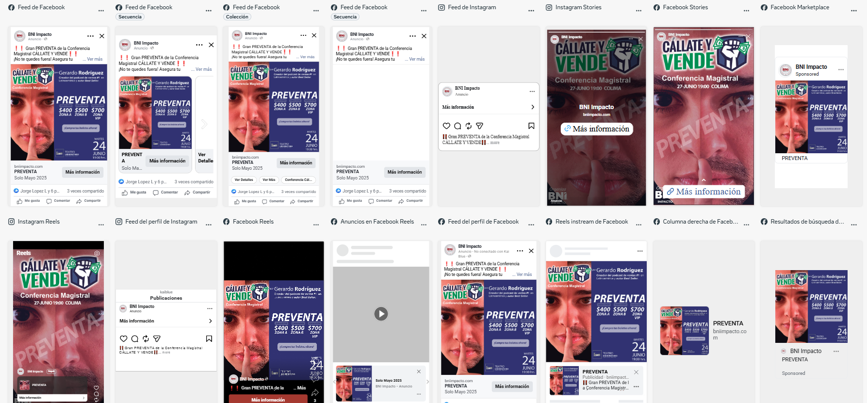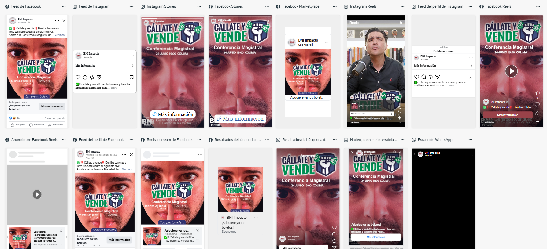 Descripción: Difusión en Meta de la conferencia Cállate y Vende.